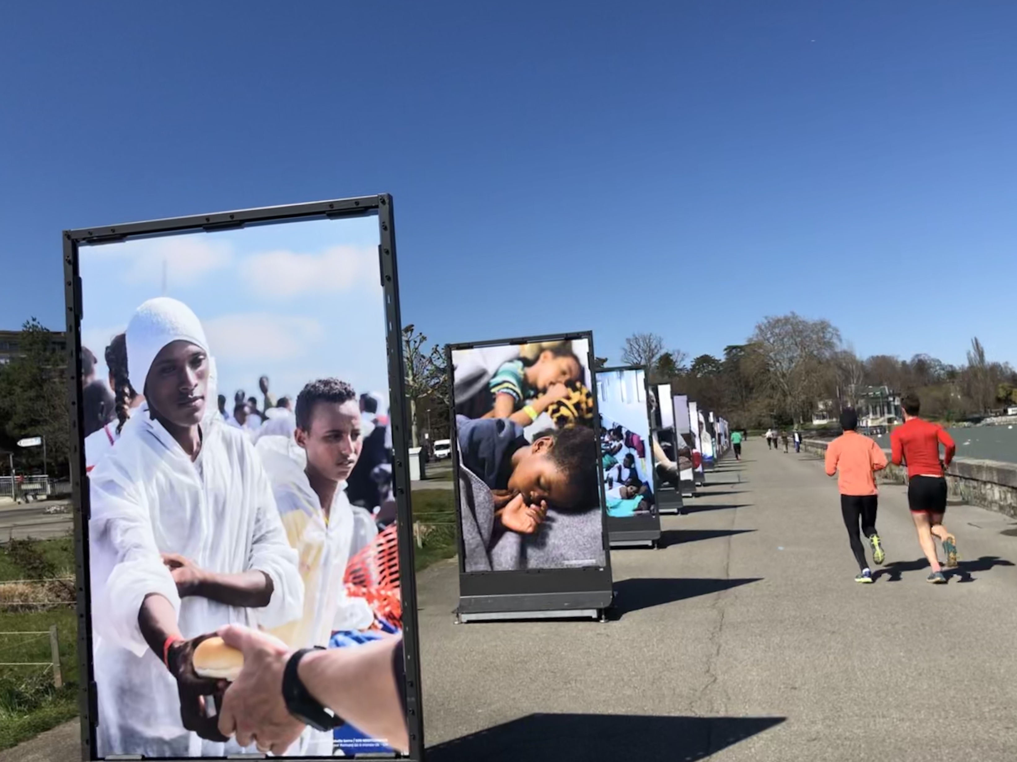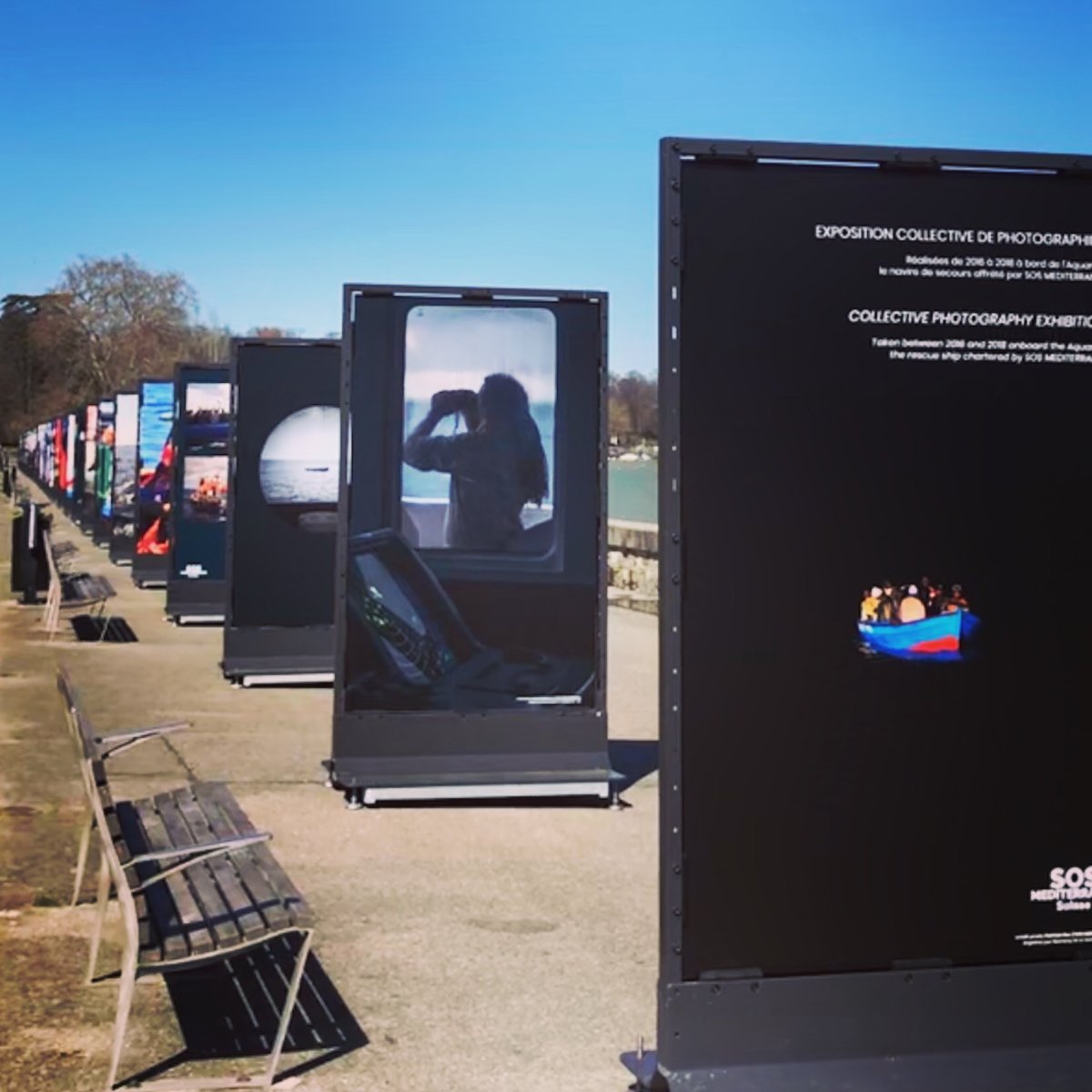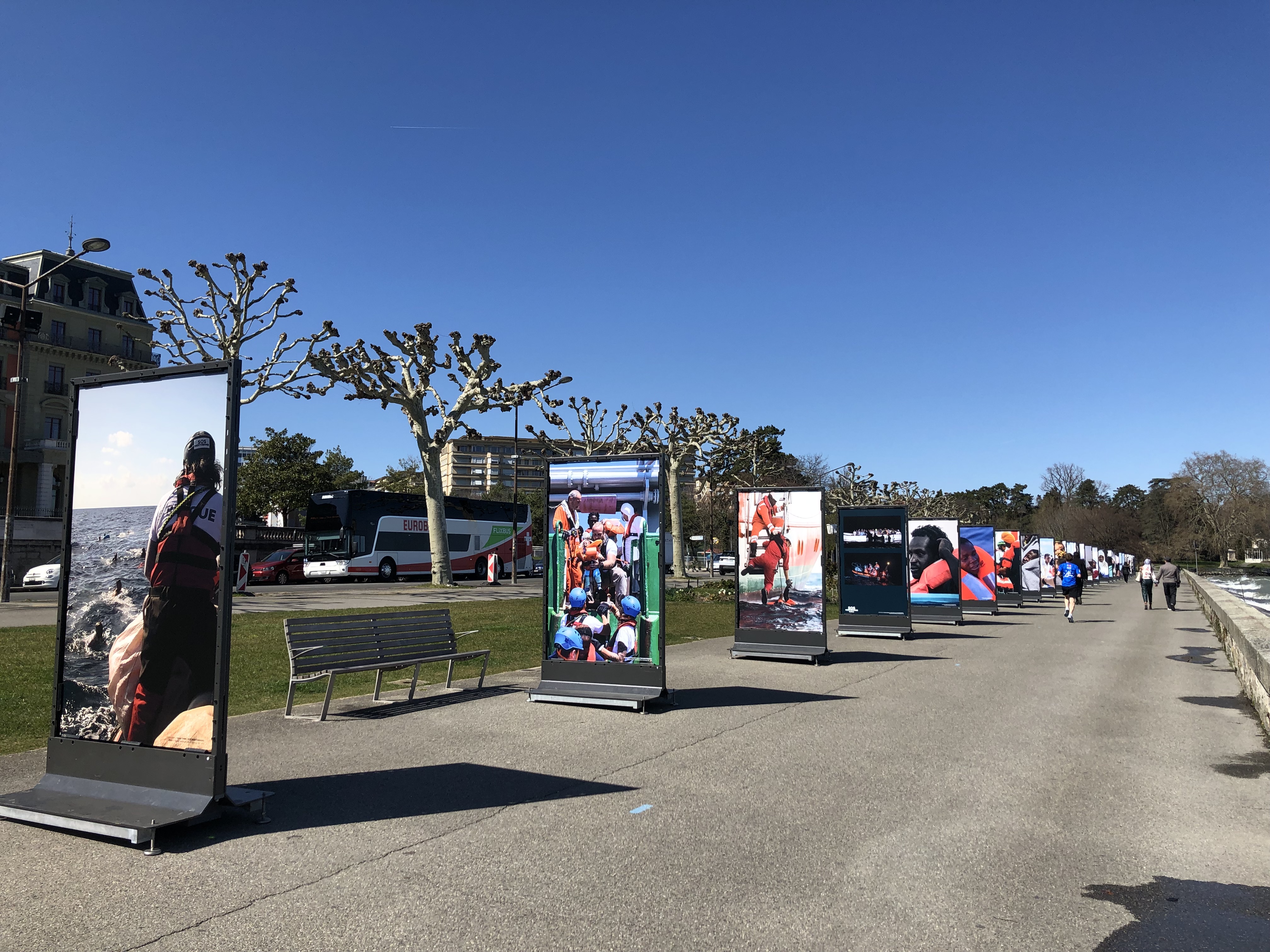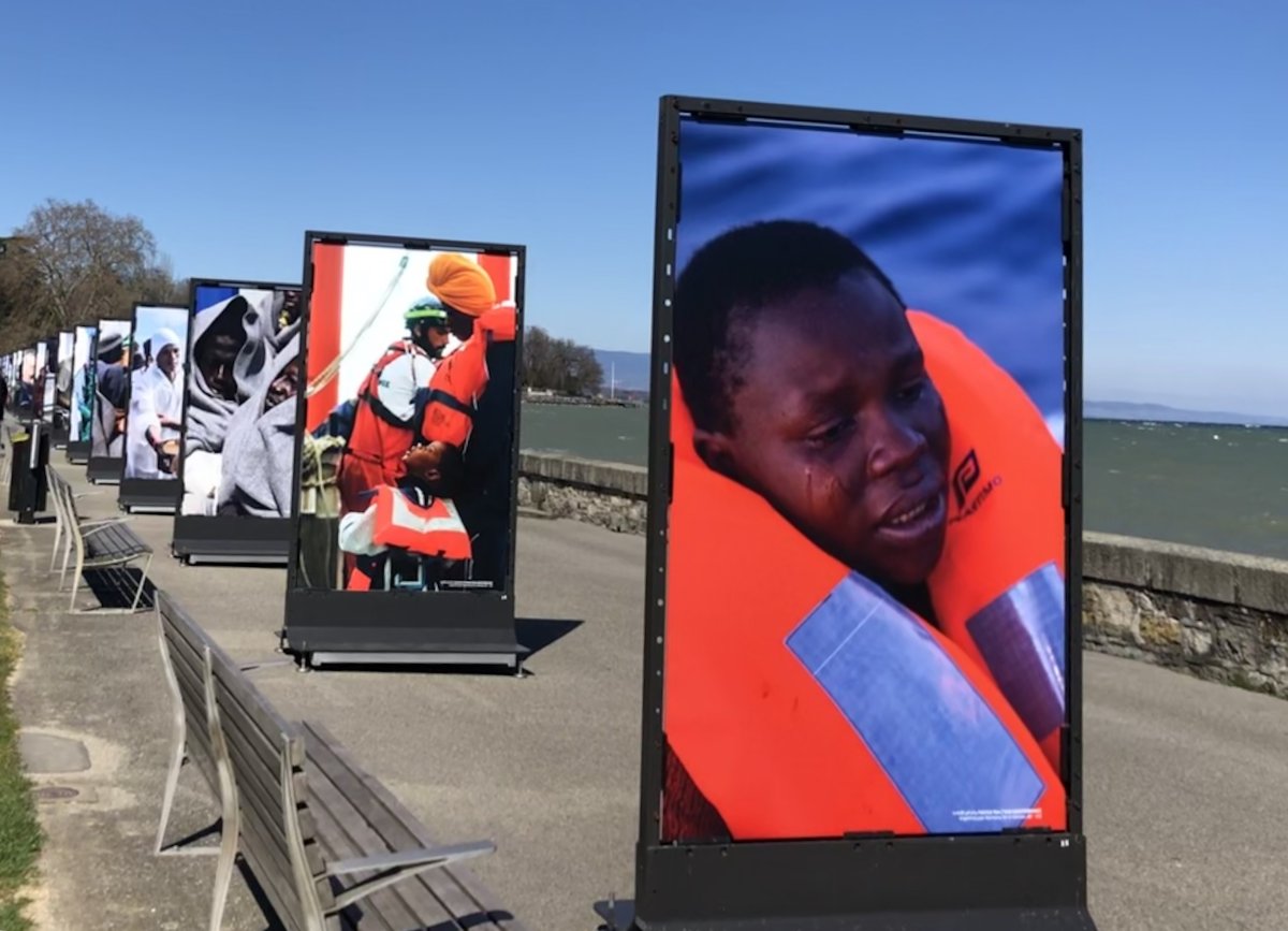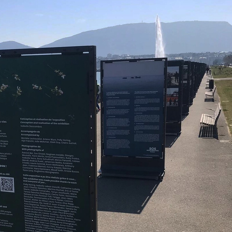 Face aux images de naufrages qui défilaient dans les médias, j'ai ressenti le besoin d'agir. En avril 2019, j'ai conçu une exposition grand public pour SOS Méditerranée Suisse, installée sur le Quai Wilson au bord du lac à Genève.